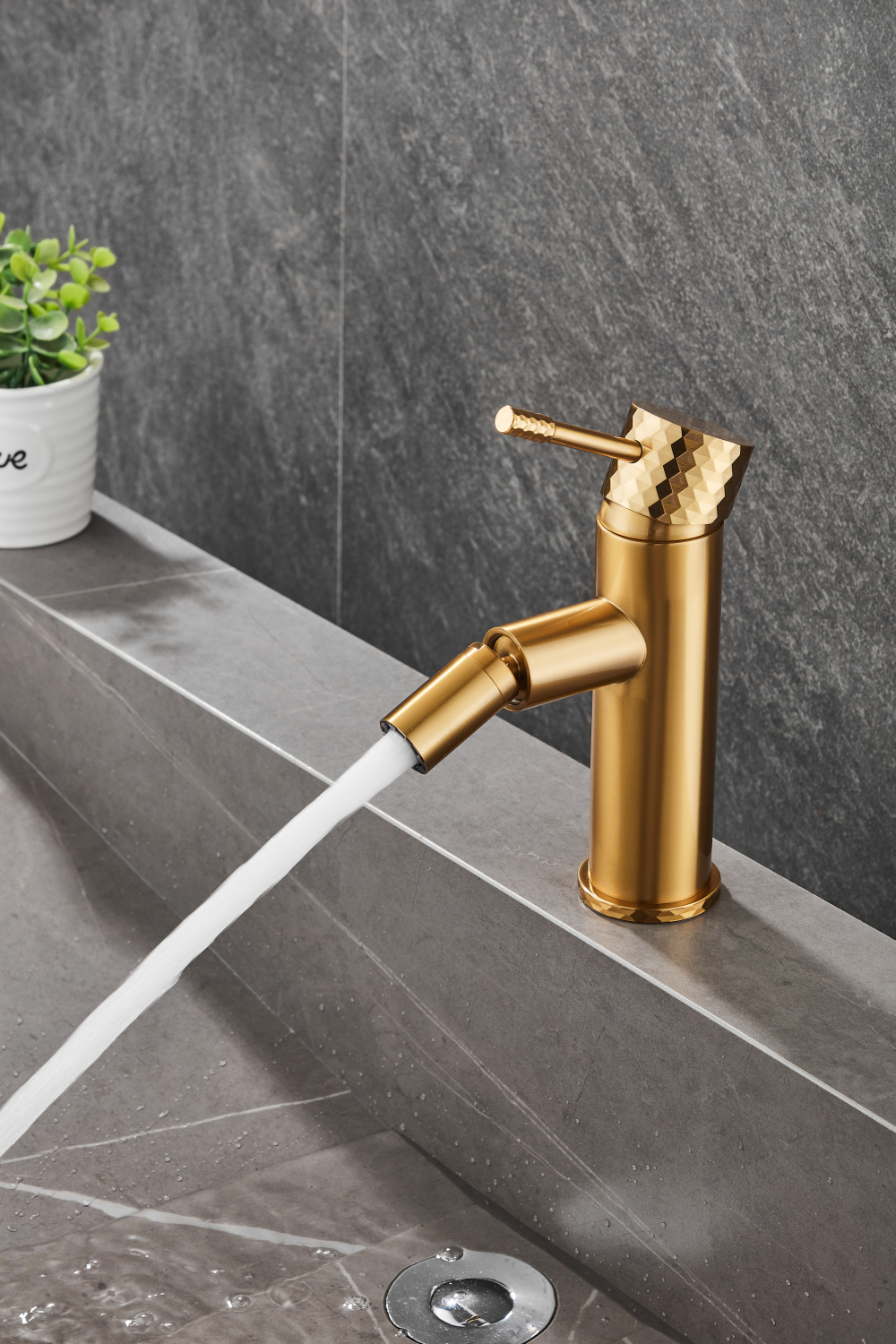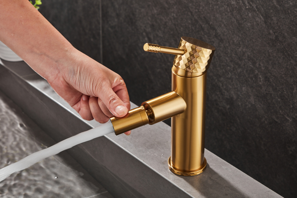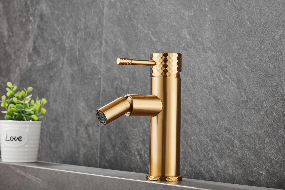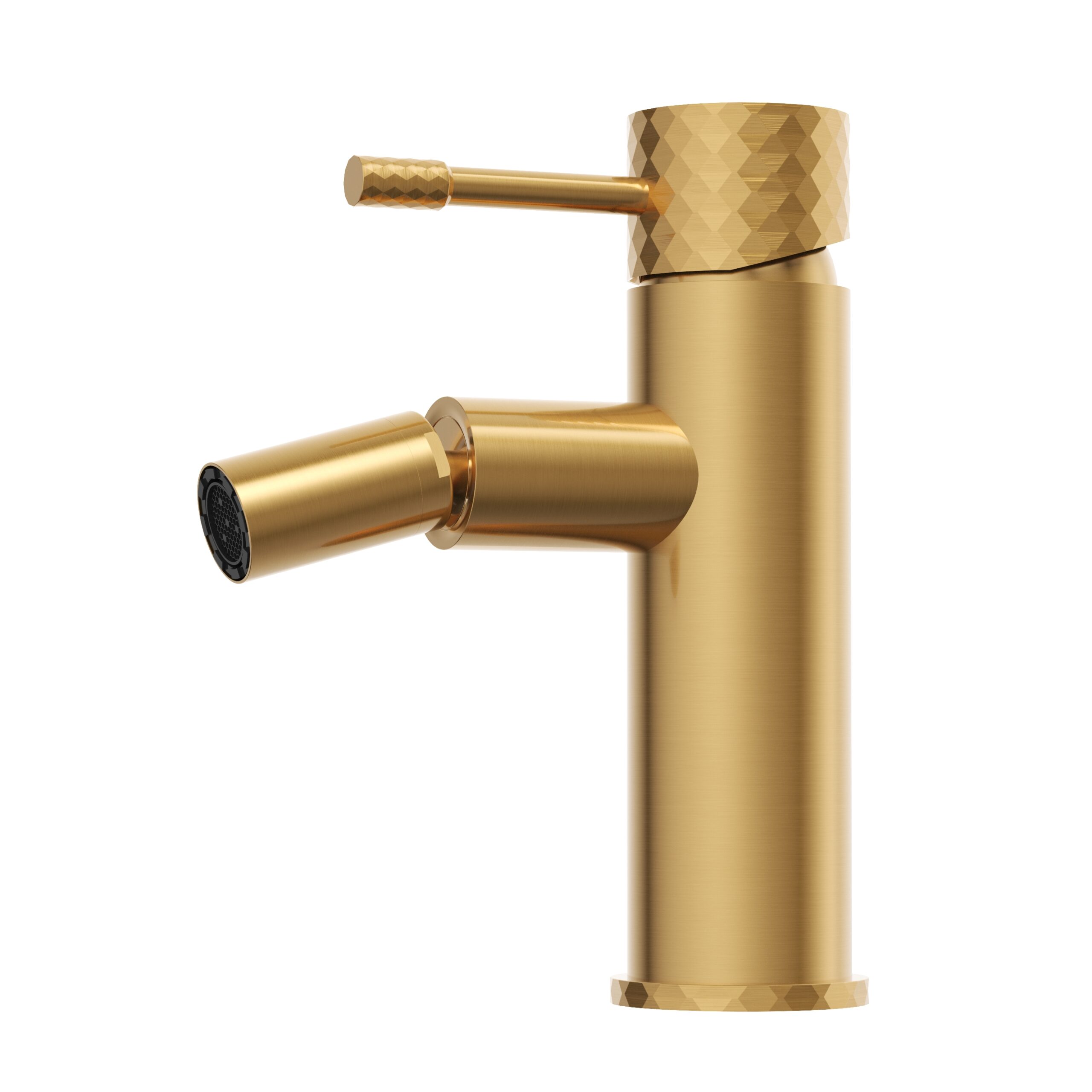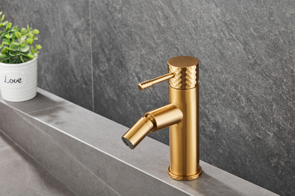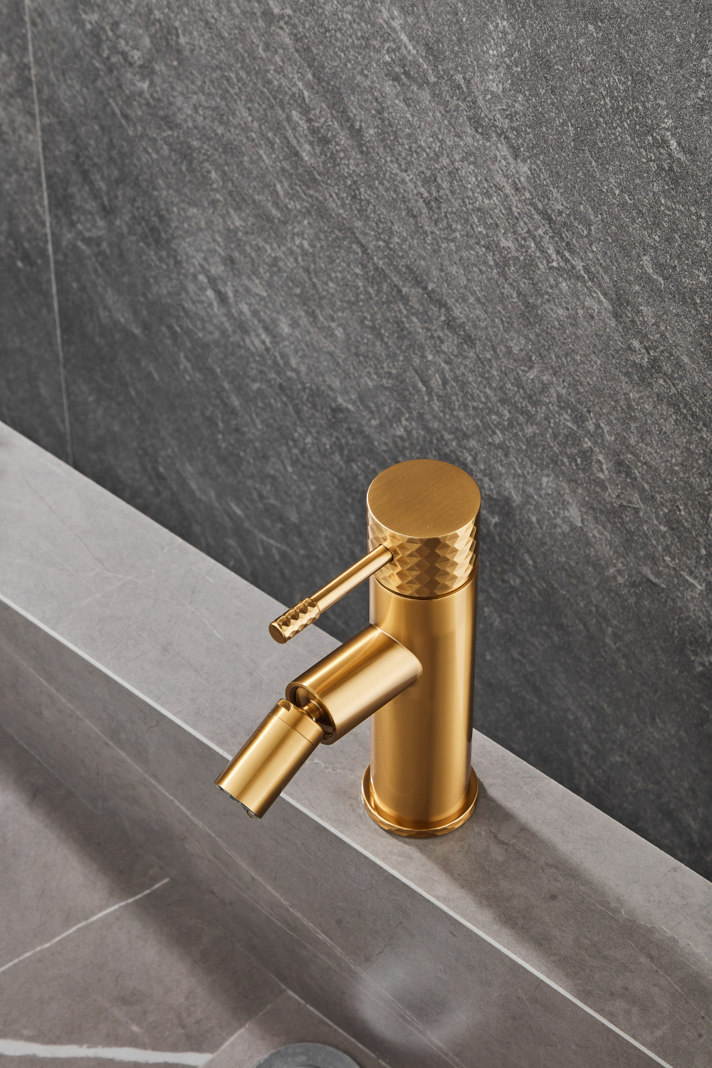 Bateria bidetowa Roy Pro w kolorze złotym to eleganckie i nowoczesne rozwiązanie do każdej łazienki. Wykonana z wysokiej jakości mosiądzu, zapewnia trwałość i odporność na korozję. Wyjątkowe diamentowe wykończenie pokrętła dodaje jej luksusowego charakteru, a minimalistyczny design idealnie pasuje do współczesnych wnętrz.
