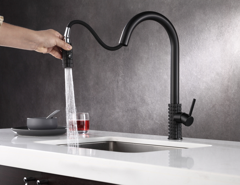 Bateria kuchenna TARU PRO to połączenie elegancji i nowoczesnej technologii, które sprawdzi się w każdej kuchni. Wyposażona w wyciąganą wylewkę, zapewnia maksymalną wygodę użytkowania, ułatwiając mycie naczyń i napełnianie dużych garnków.