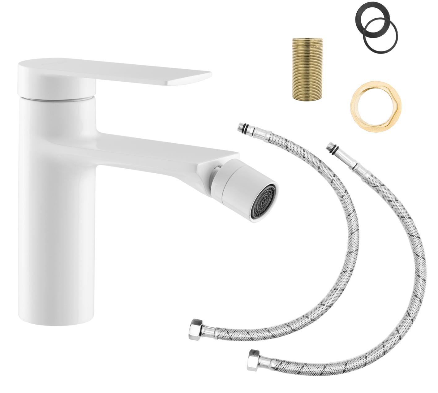 Bateria bidetowa Faro w kolorze białym to elegancka i funkcjonalna armatura łazienkowa, wyróżniająca się nowoczesnym designem i wysoką jakością wykonania. Jej unikalna konstrukcja zapewnia efektowny wypływ wody, dodając łazience wyjątkowego charakteru.