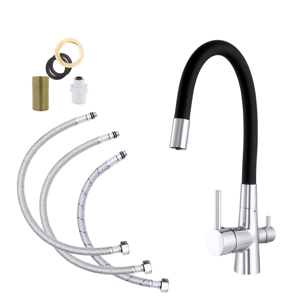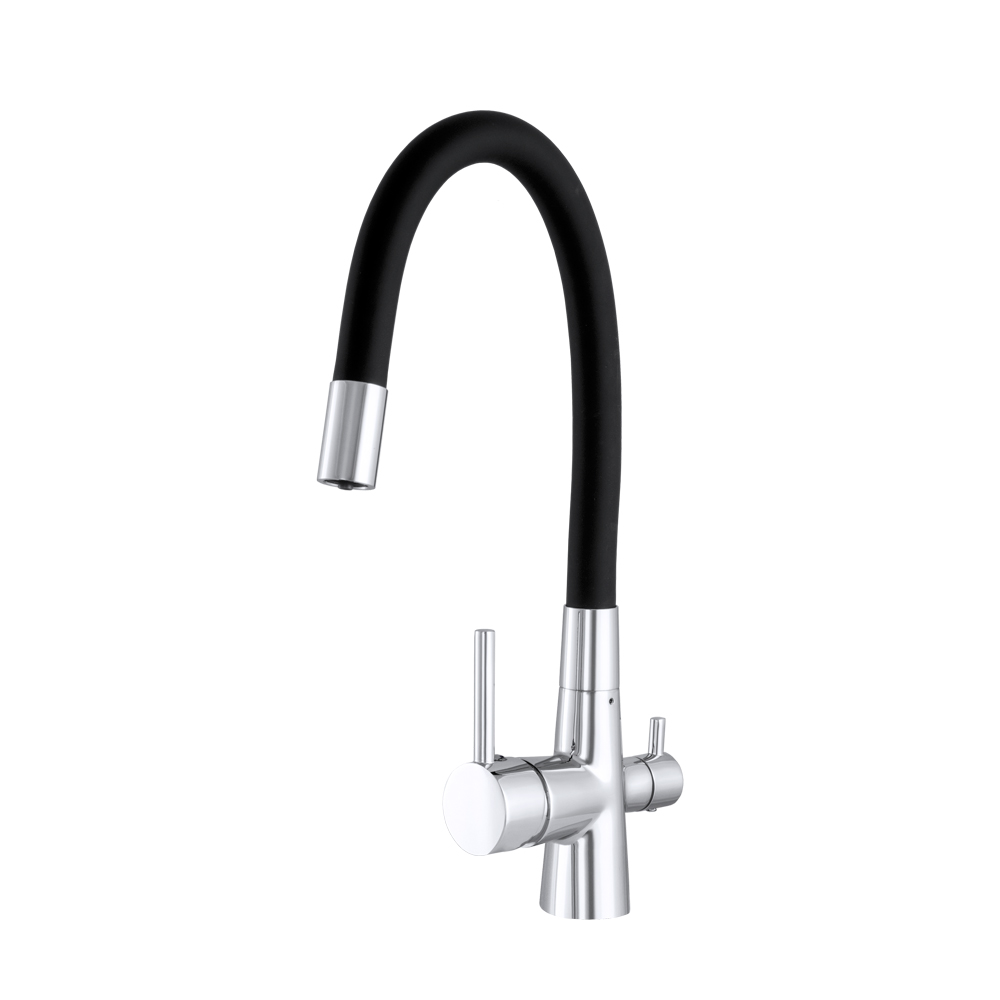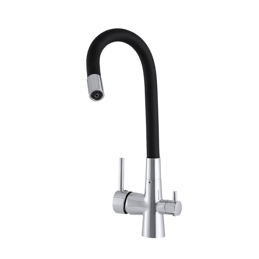 Model FLEX został wyposażony w innowacyjny system trójdrożny, który umożliwia korzystanie z wody ciepłej, zimnej oraz filtrowanej – bez konieczności montażu dodatkowej wylewki. To rozwiązanie zwiększa komfort użytkowania, oszczędza miejsce oraz podkreśla estetykę kuchni.