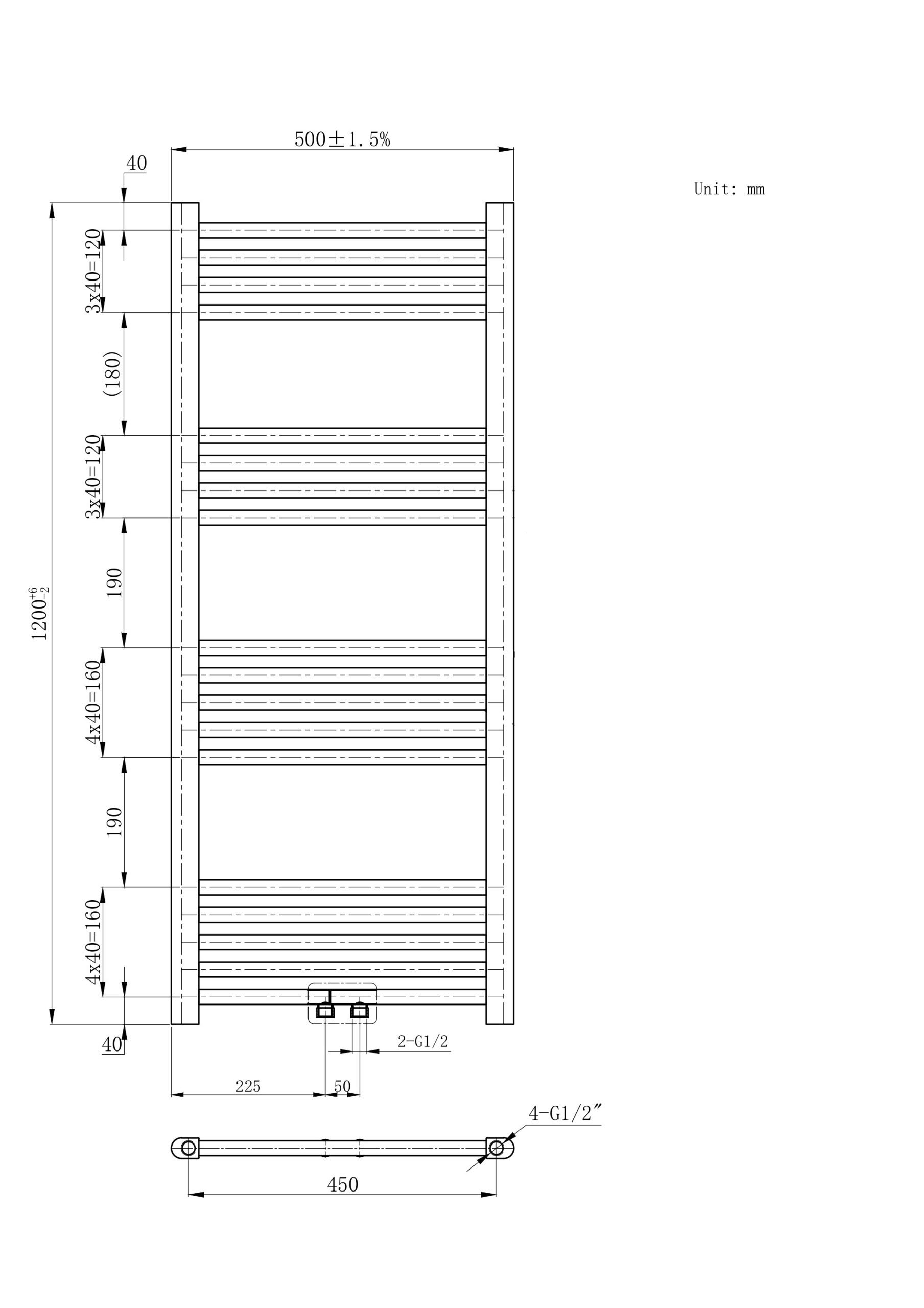 Grzejnik łazienkowy simple 50×120 cm brushed gold