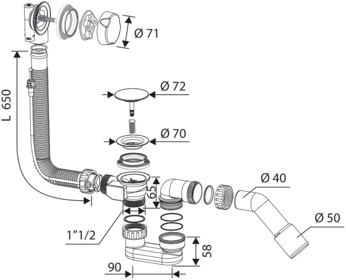 • Syfon wannowy automatyczny