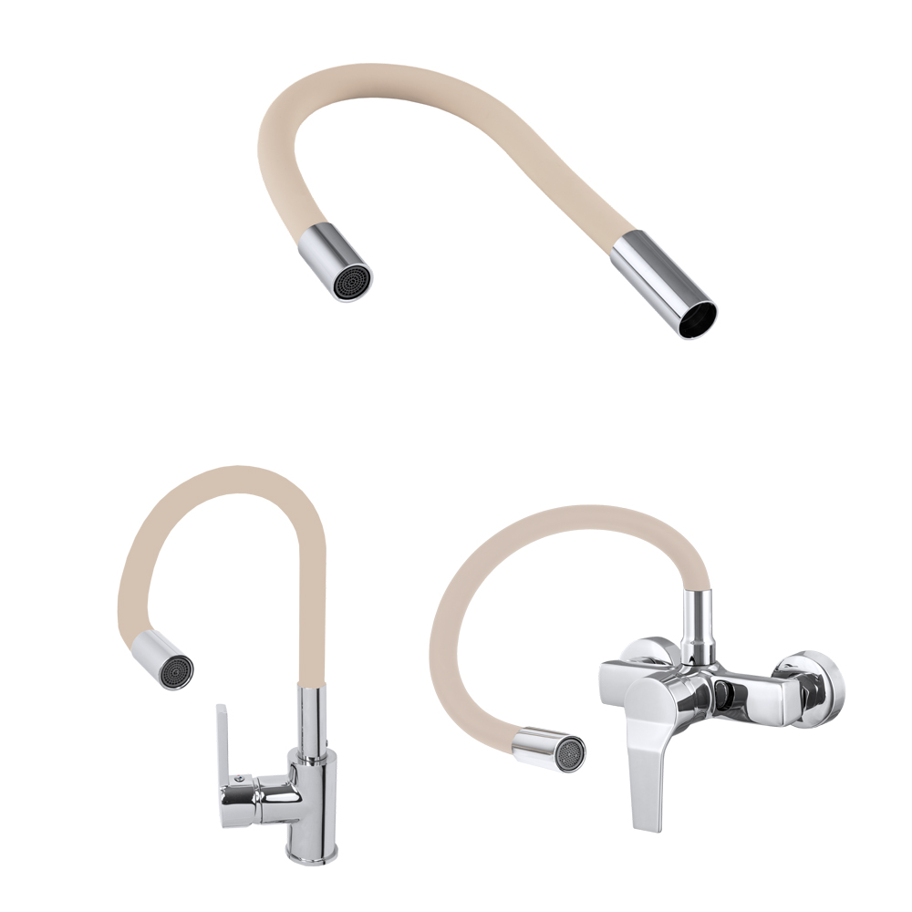 • końcówki CHROM, gumowy oplot wylewki – BEŻOWY
